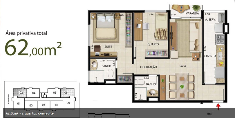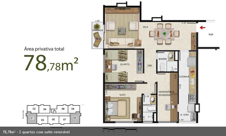 APARTAMENTOS DE 2 QUARTOS + 1 REVERSÍVEL – de 62m² até 78m²
